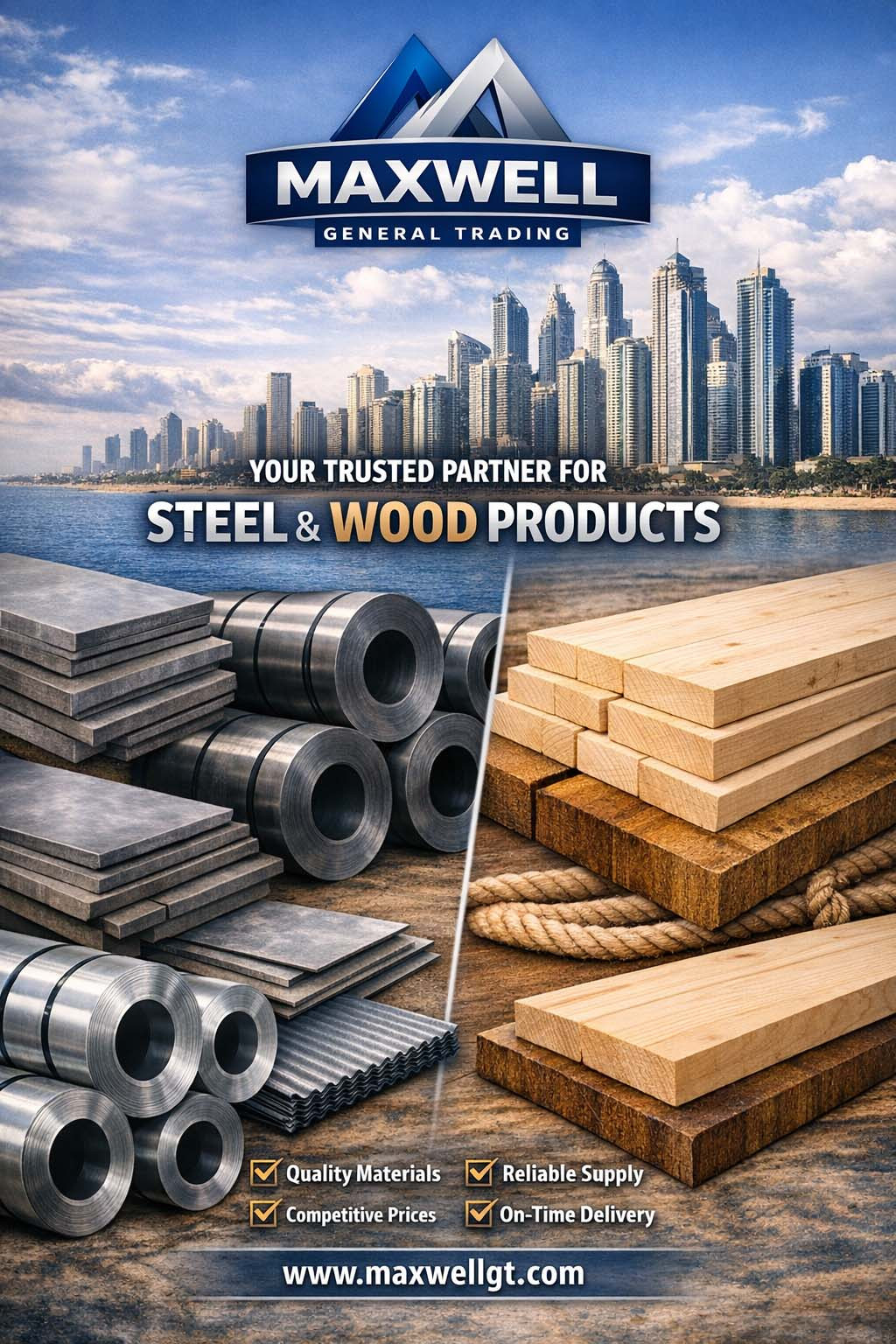 Maxwell General Trading is a dynamic and reliable trading company specializing in the supply of high‑quality steel products and premium wood materials across regional and international markets.